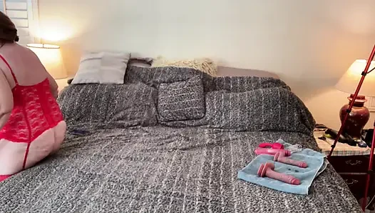 GILF carmens oma in rot, in zwei positionen, schwanzlutscherin